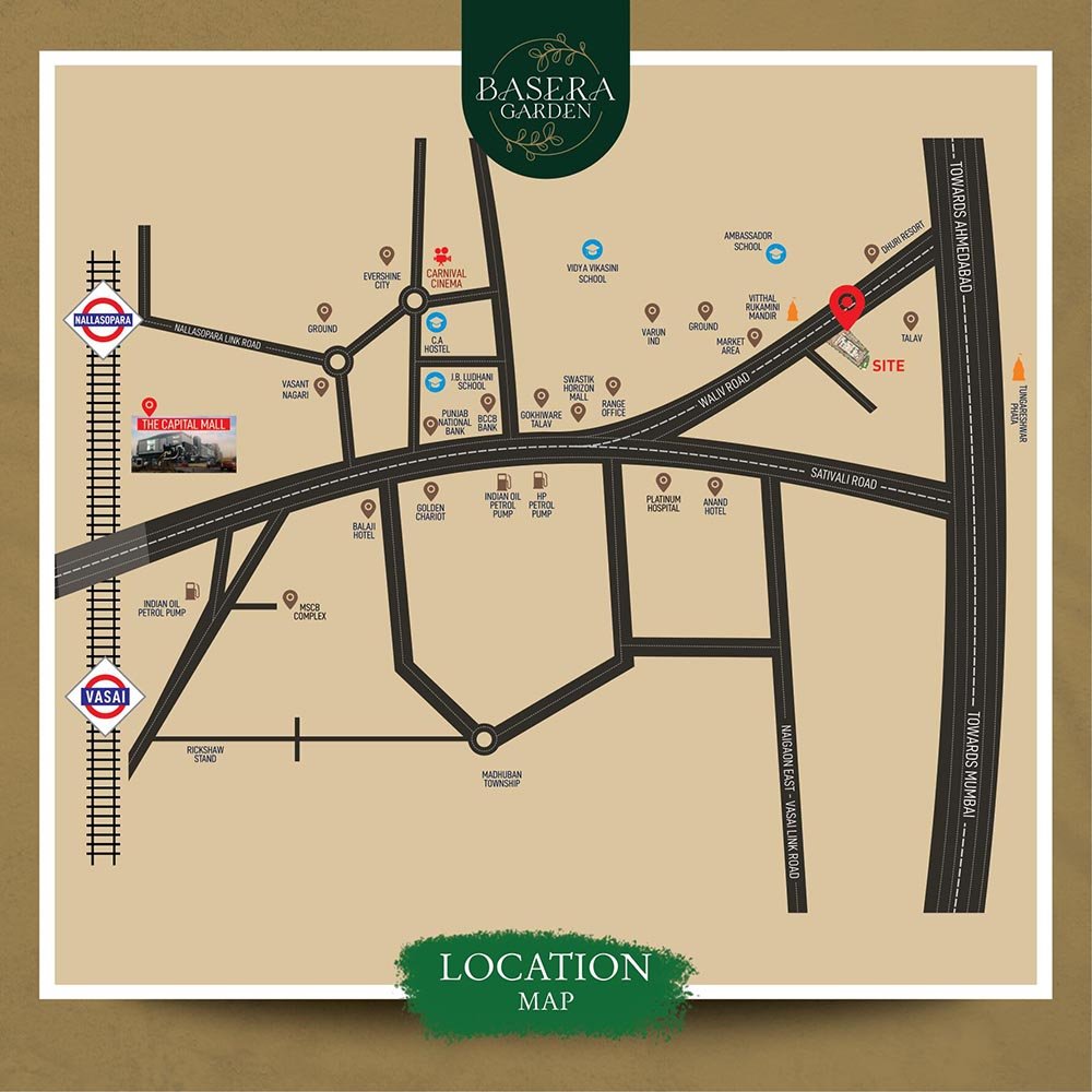 Basera Garden’s biggest plus is its location – parallelly connected to NH-8. With several educational institutions, industries & centres of recreation, planned in the vicinity and prestigious infrastructure project, the area is all set to be the epicentre of growth in East Vasai in the time to come.